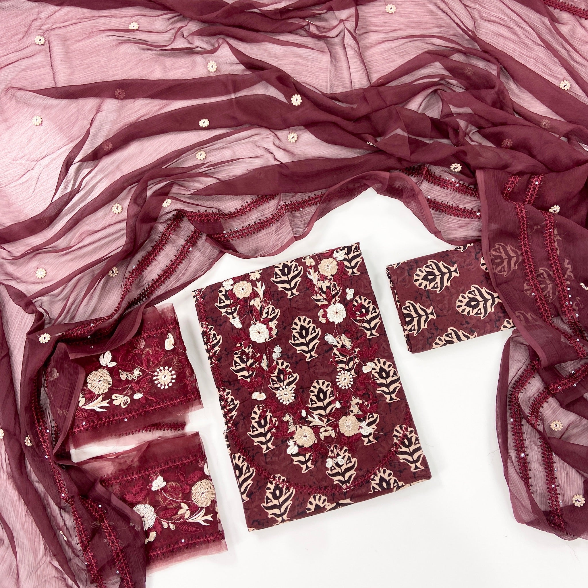 Crimson Embroiderd & Digital Printed Lawn 3PC