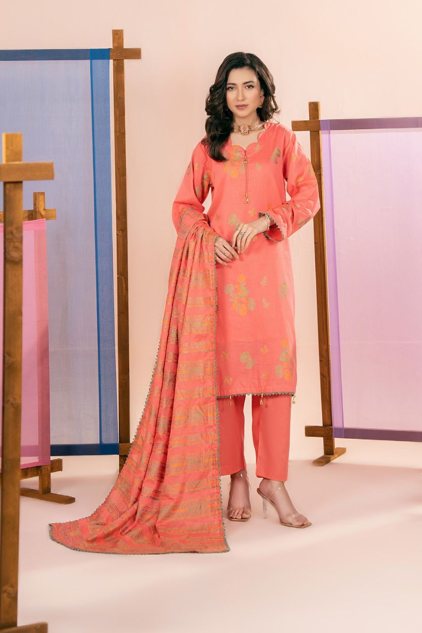 Maria B Jacq Linen Dyed Matching Suit With Wool Shawl-3PC