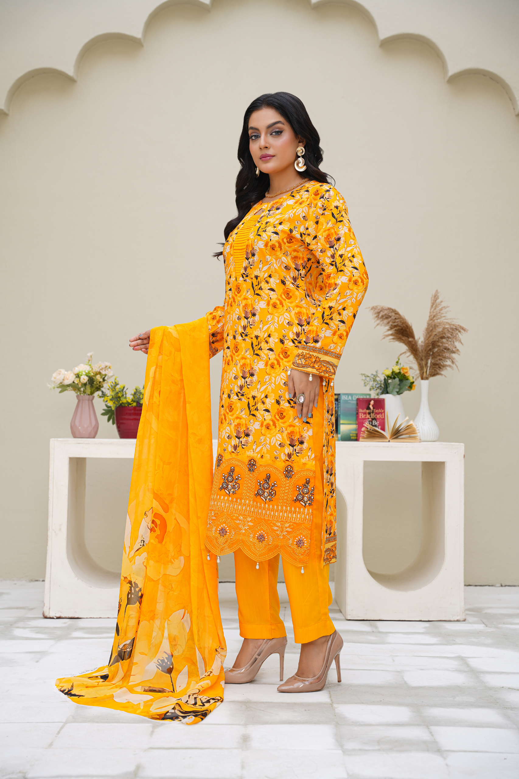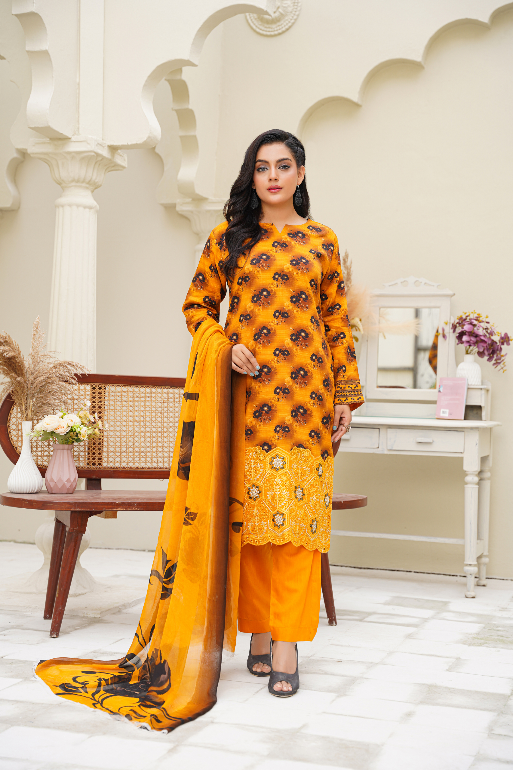 Baroque Printed Linen With Emb Patches 3PC