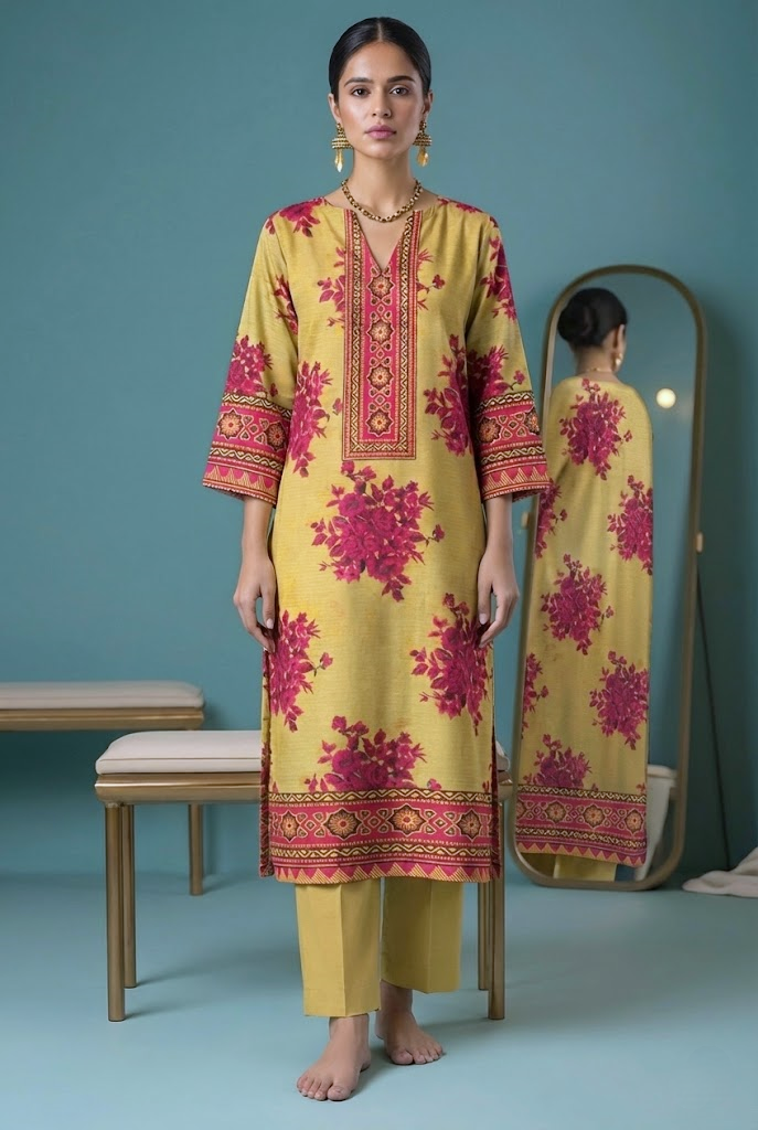 Wania Gold Premium Digital Printed Bana Dora Lawn 2PC