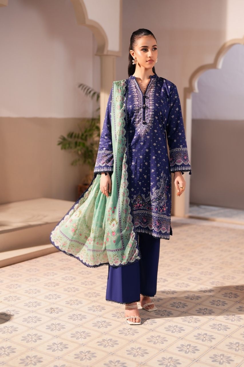 Jacquard By Regalia Digital Printed Lawn 3PC Digital Printed Lawn Shirt Digital Printed Voil Lawn Dupatta Plain Trouser