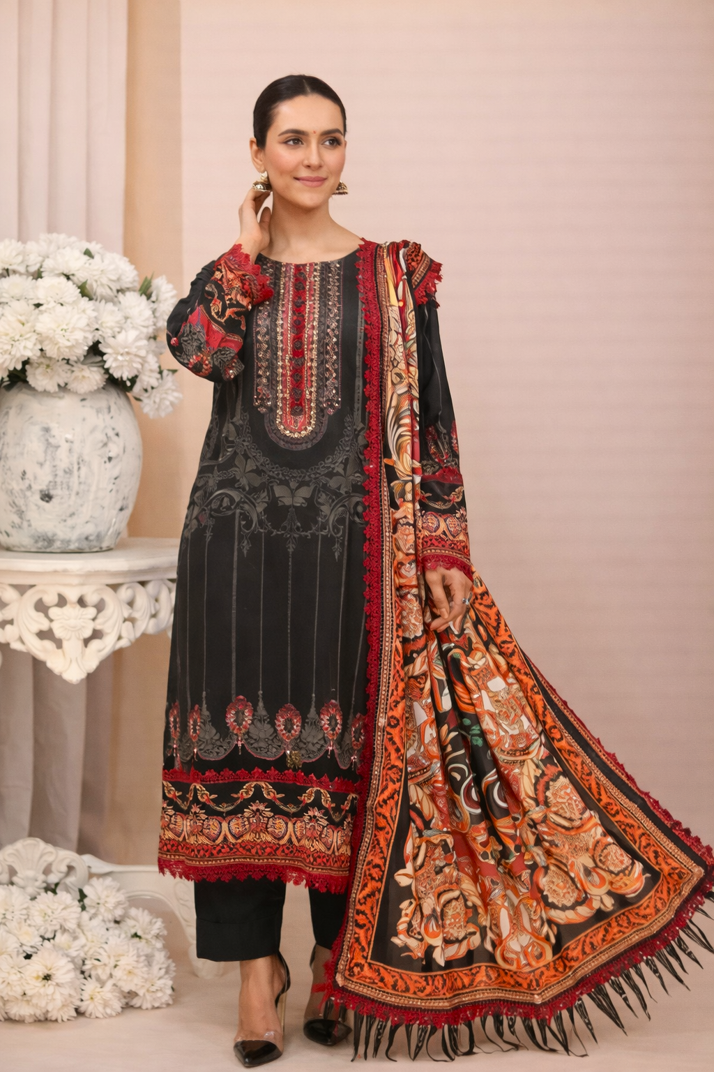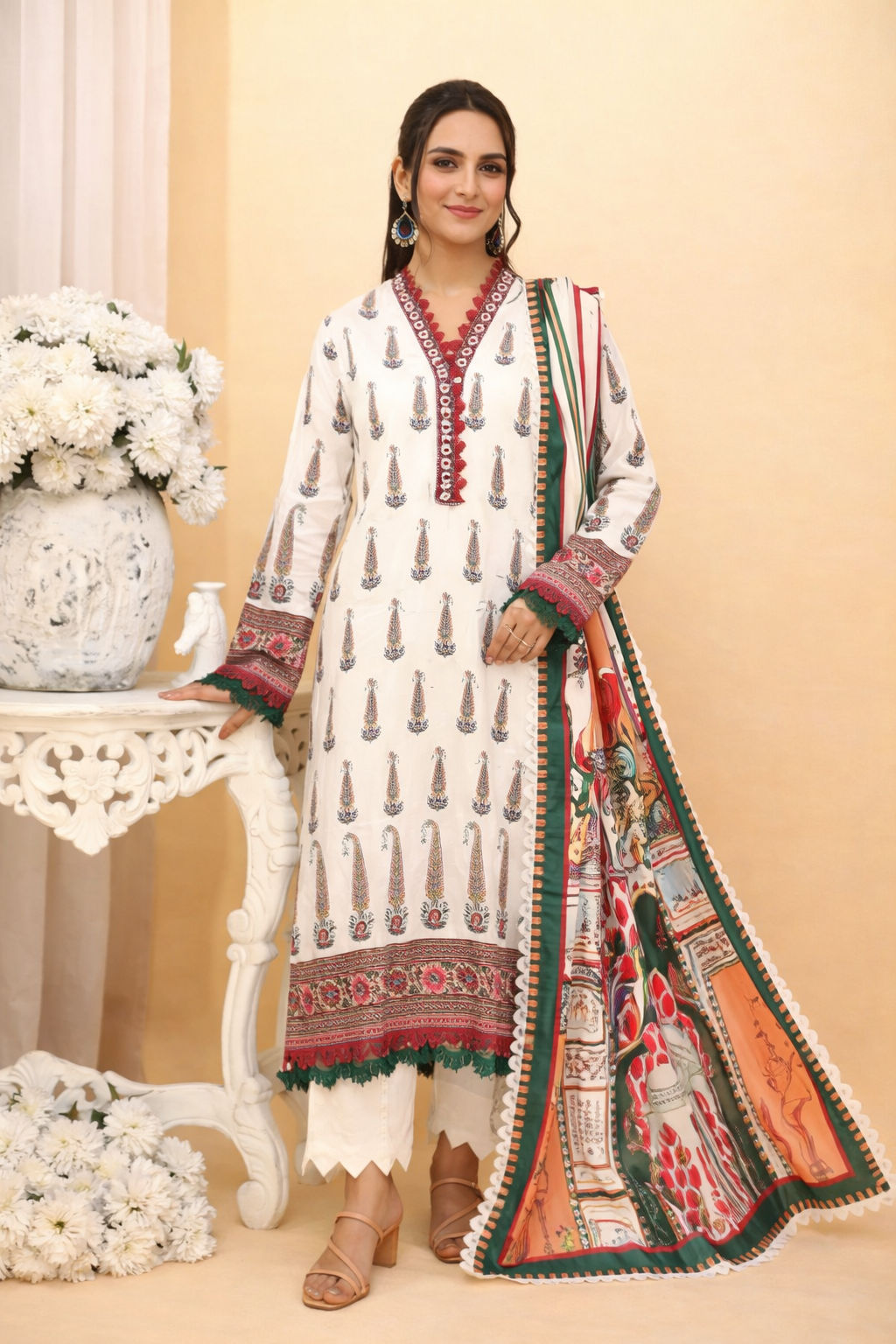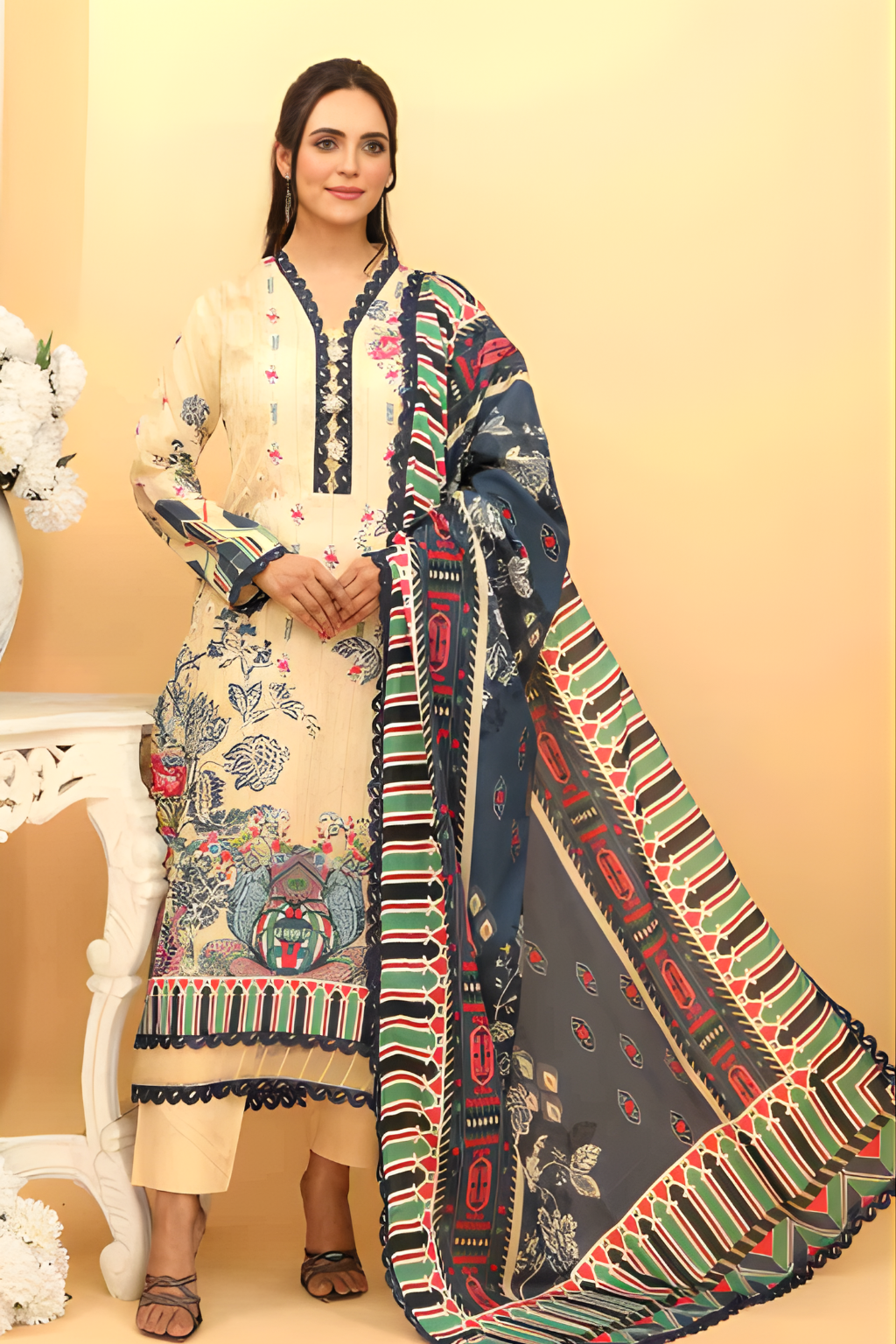Ajrak Premium Digital Printed Lawn 3PC Premium Digital Printed Lawn Shirt Digital Printed Pure voil Dupatta Dyed Cotton Trouser