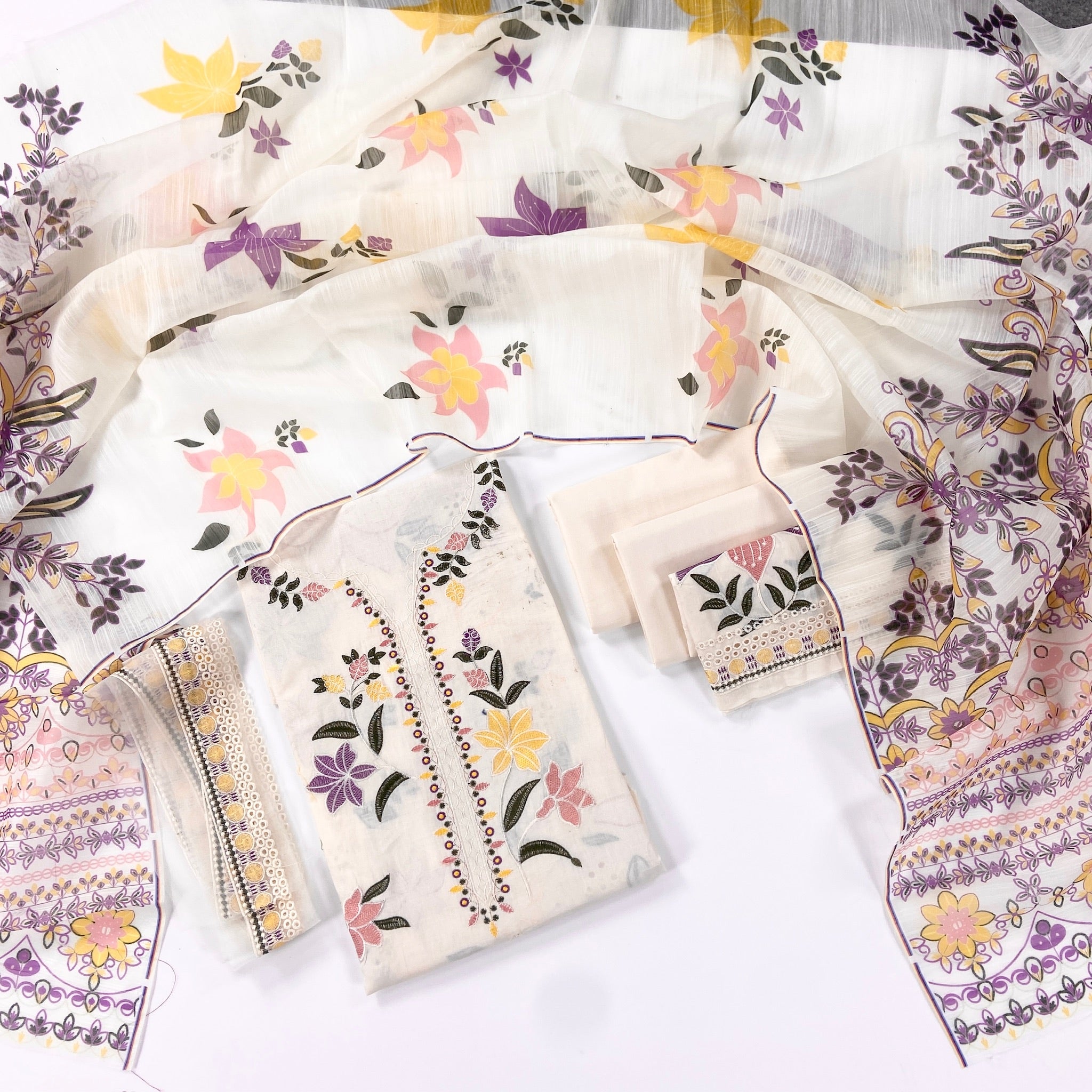 Aneelas Full Embroidered Lawn With Daman & Chalk Patti 3PC