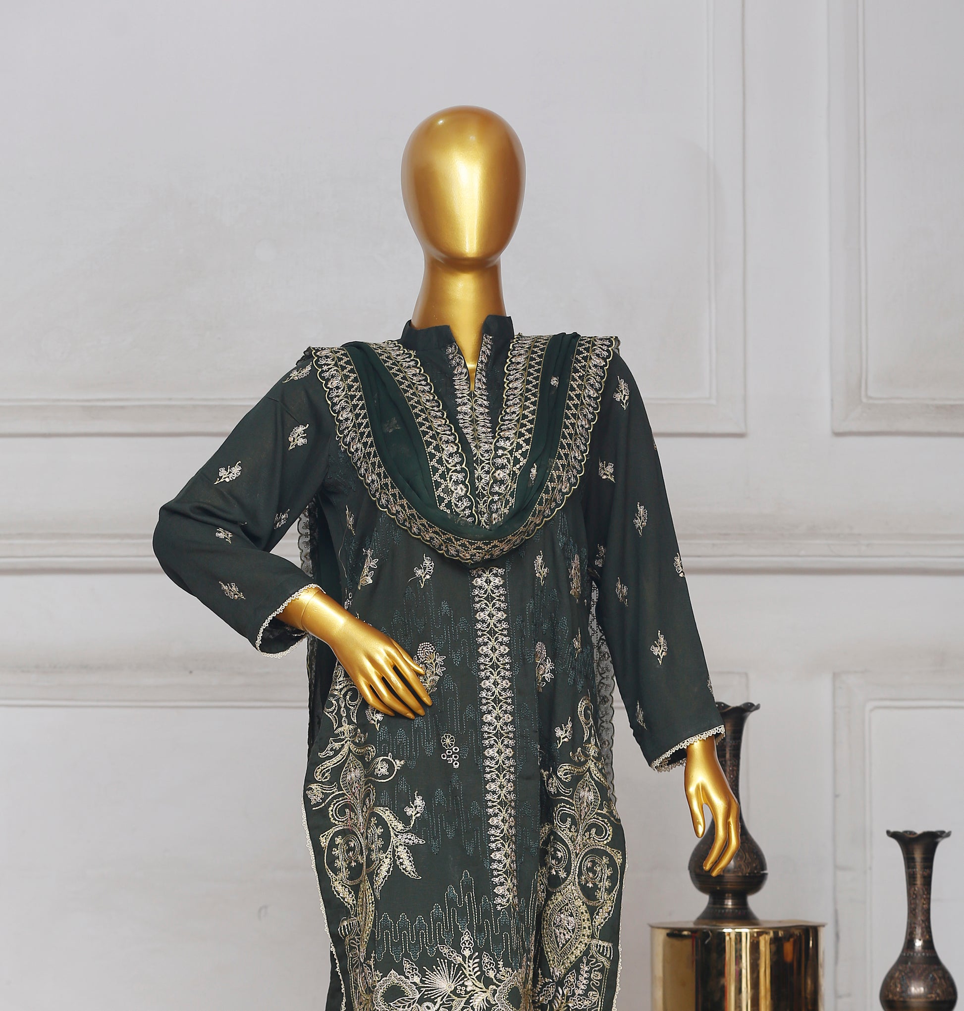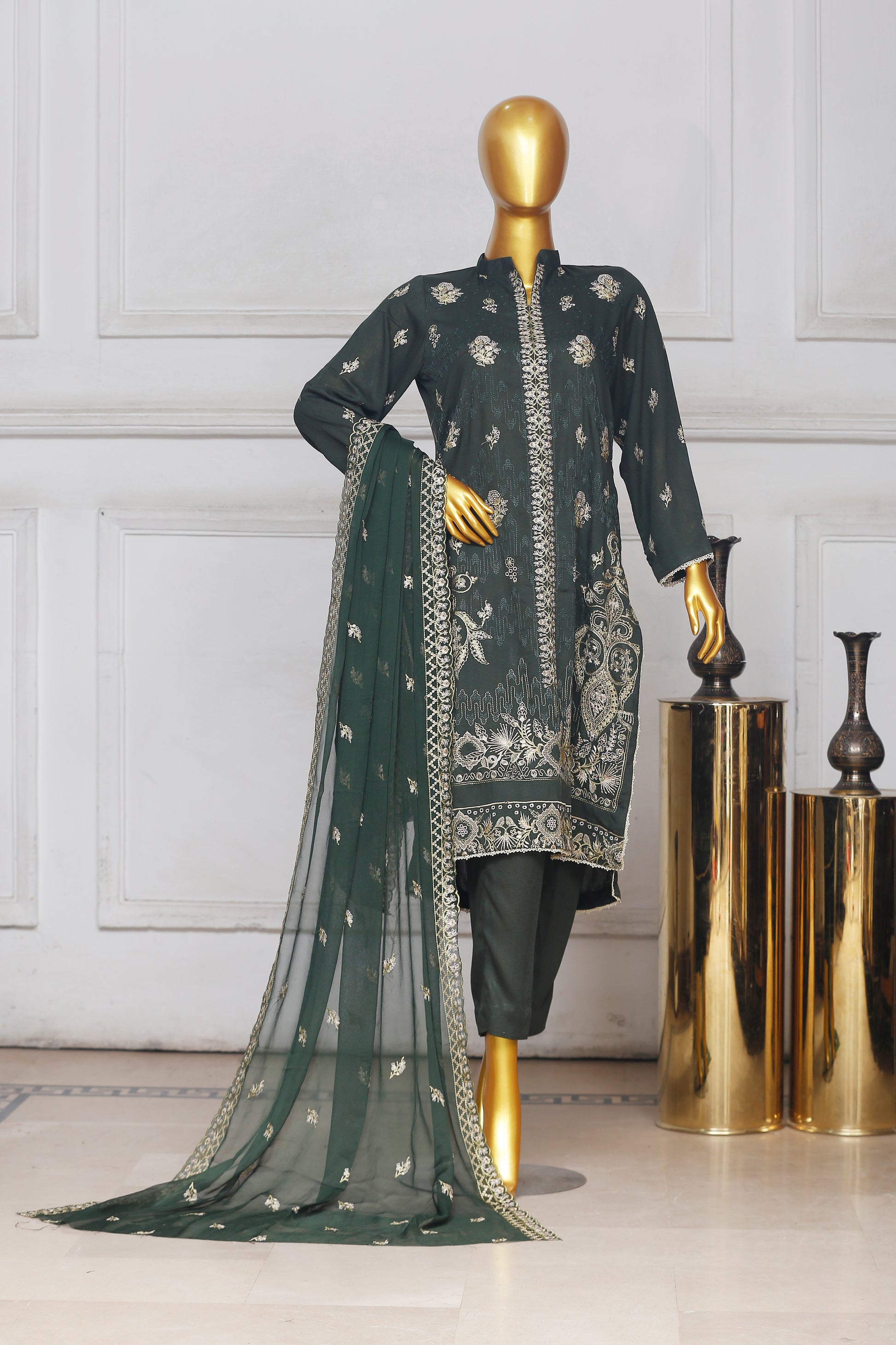 with Heavy Embroidered Bamber Dupatta Shawl