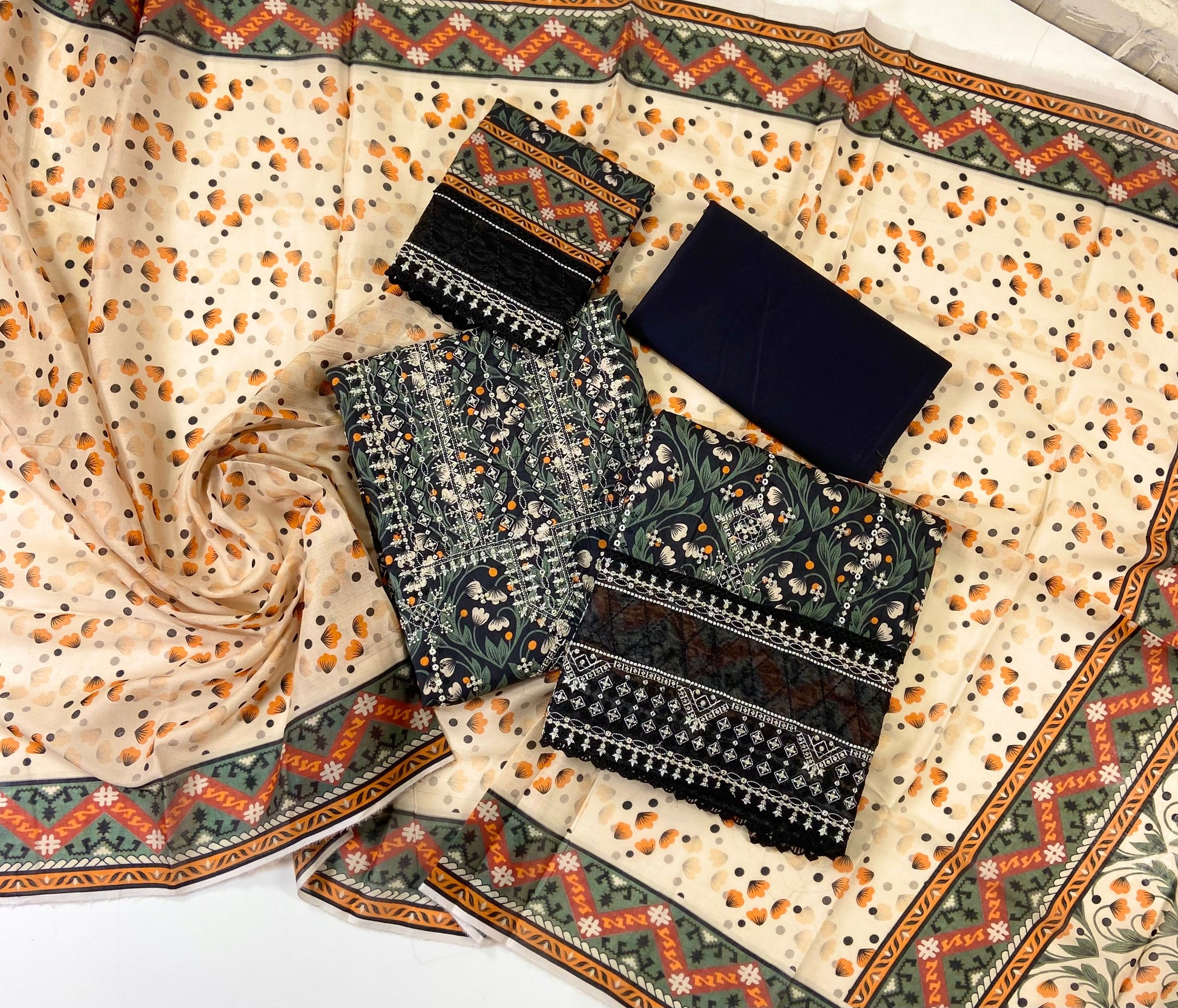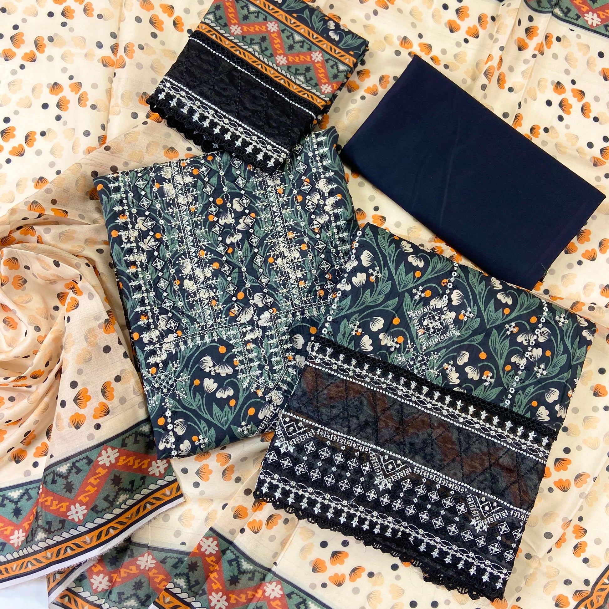 Digital Print with Heavy Embroidered