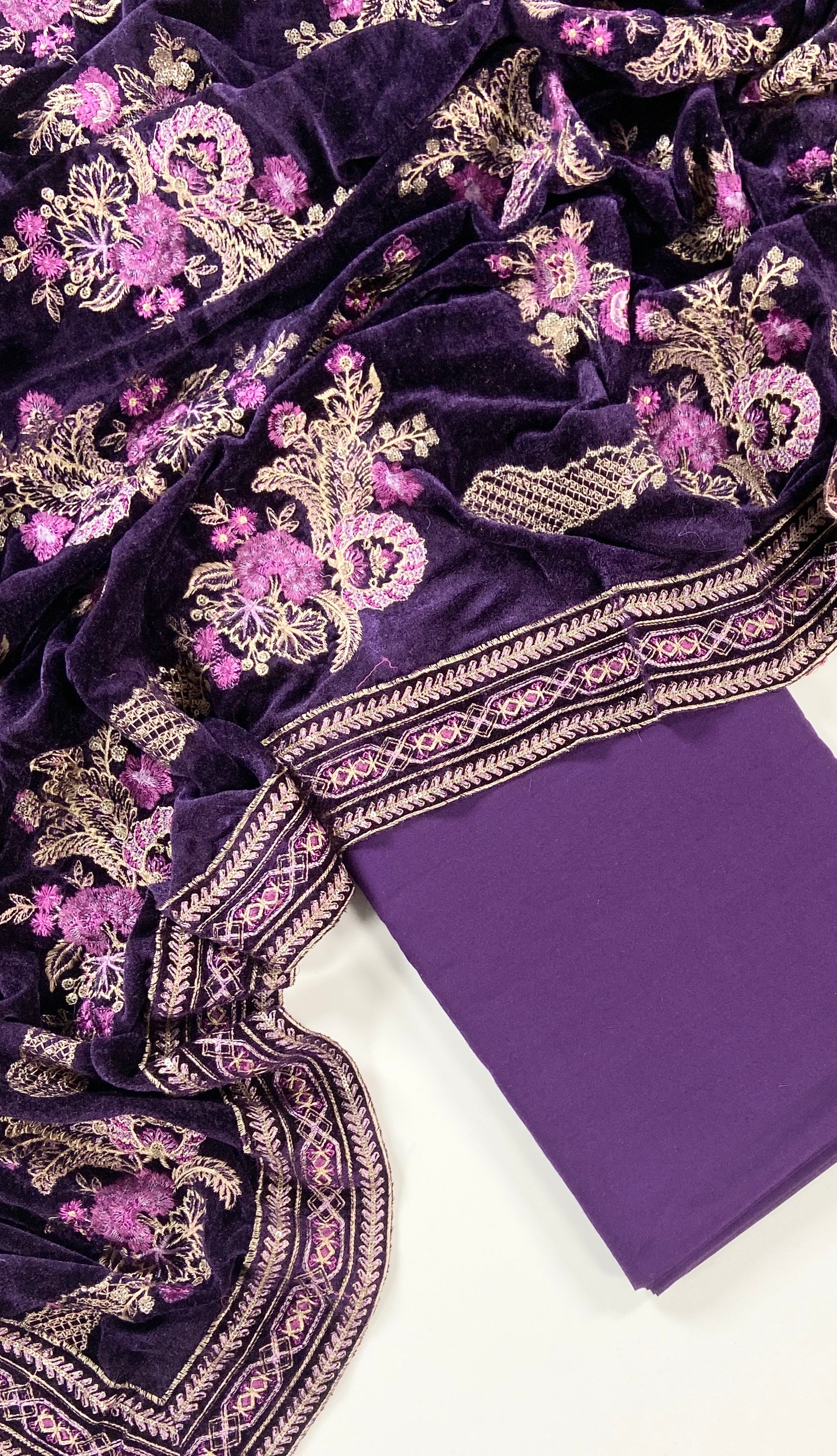 Luxury Velvet Embroidered Suit – 3PC