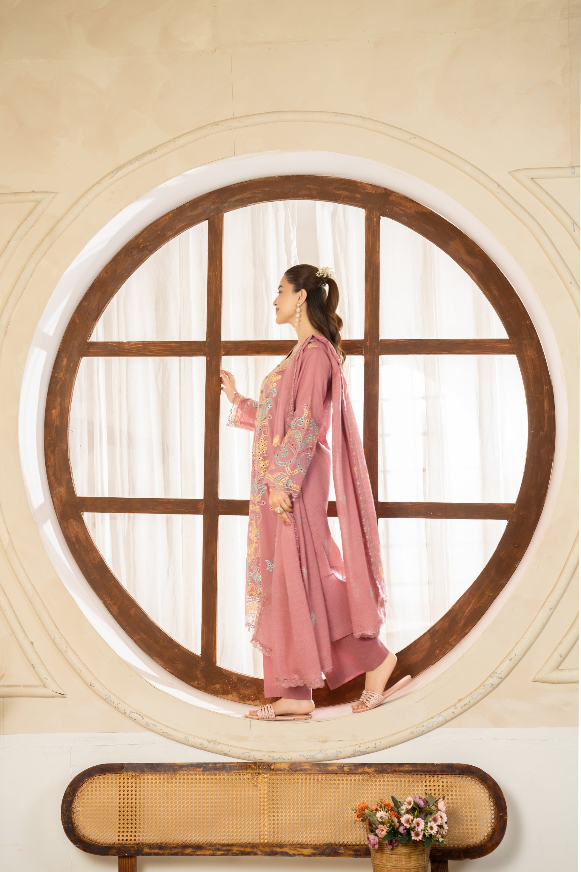 - Embroidered Bana Dora Voil Dupatta