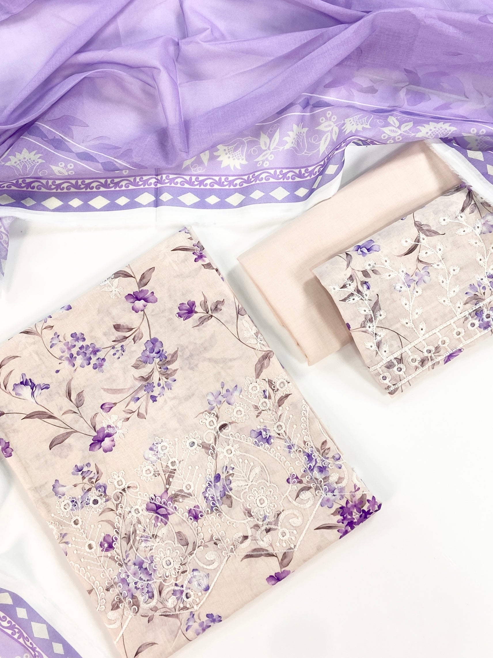 Shanaya Digital Print Chickenkari Lawn With Voil Lawn Dupatta 3PC